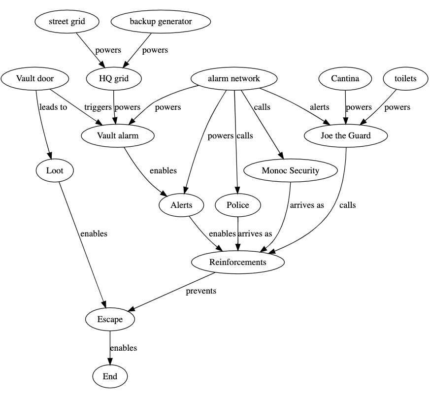 In movies and books, we follow the crew through their preparations and then see them pull off the perfect caper, where each element more or less seamlessly enables the next part, until it all comes together in a showdown and ends with the heroes walking (or running?) off with their ill-gotten gains.