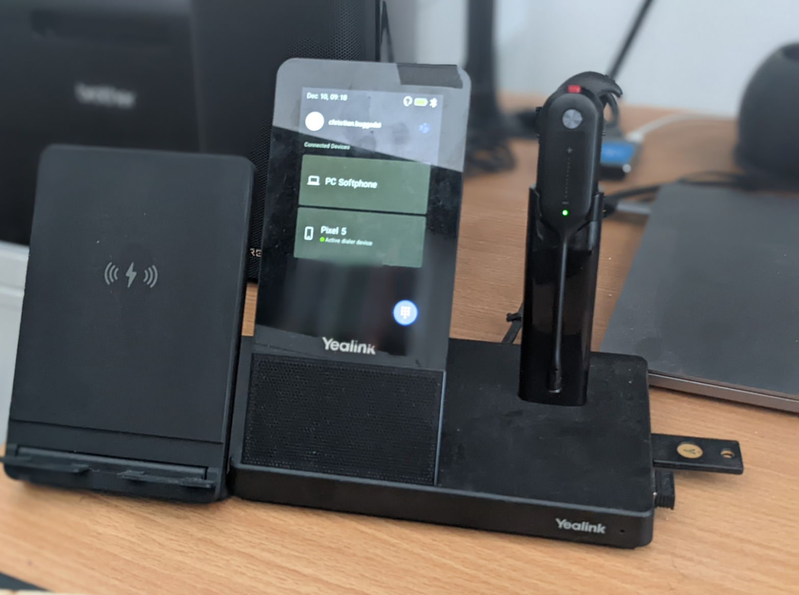 I ditched the Bluetooth headset for a DECT one. That has a lot better range and audio quality, while also sitting quite easy on the ear. It is a Yealink WH67 with built in speakerphone. As soon as I put the headset into the cradle, it switches from headset to hands-free operation. This happens entirely on the device, any computer or phone connected to the WH67 not seeing that change. I love this, as I never have to twiddle any software settings. And yes, the WH67 also has Bluetooth, so it connects to the computer and the phone at the same time.